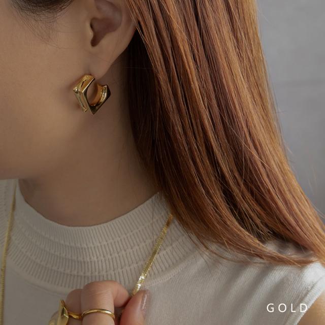 大人のカジュアルスタイルにピッタリ◎スクエア型のシルエットがユニークなフープタイプ。