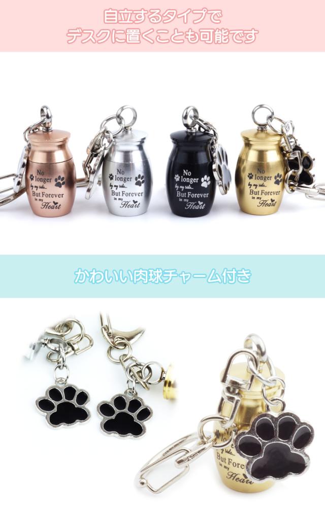 ペット 遺骨 カプセル 肉球 チャーム付き ミニカプセル キーホルダー 自立式 遺骨入れ メモリアル ペット仏具 ナスカン