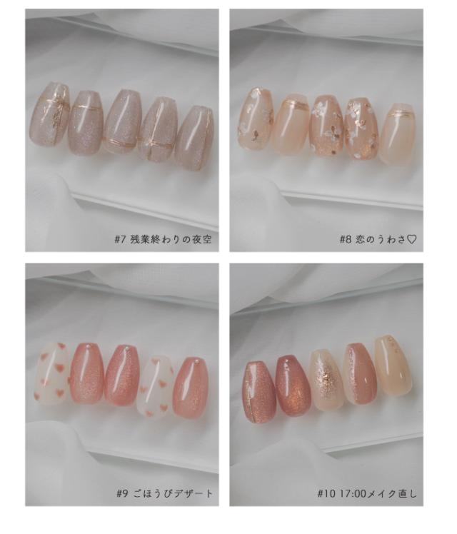 ■甘いもので小休憩セット 【1】期待のニューフェイス 【4】連休 【5】15:00 コーヒータイム 【8】恋のうわさ 【9】ごほうびデザート ■憧れの先輩セット 【2】退勤後の待ち合わせ 【3】ナチュラルメイク 【6】デキる女 【7】残業終わりの夜空 【10】17:00メイク直し |