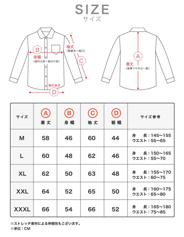 3XLサイズ:着丈66cm身幅54cm袖丈66cm裾幅52cm