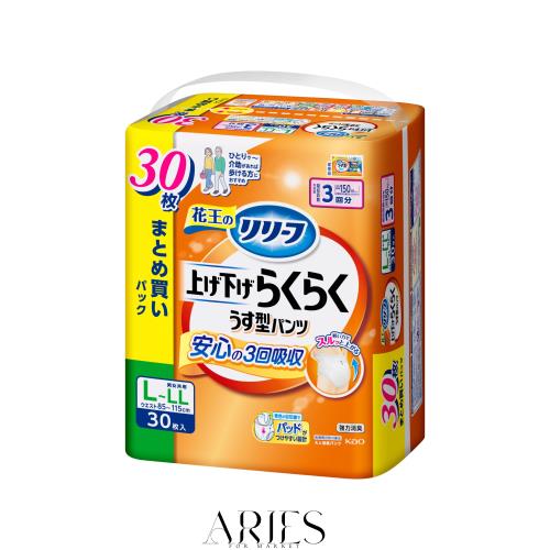 ◆商品名:リリーフ パンツタイプ 上げ下げらくらくうす型パンツ 3回分【ADL区分:一人で歩ける方】L−LL30枚 大人用おむつ