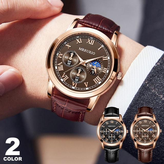 【メール便送料無料】 腕時計 メンズ腕時計 時計 ビジネス シンプル スタンダード 生活防水 ビジネス 仕事用 スーツ フォーマル 通勤 通学 学生 アナログ腕時計 丸型 見やすい メンズ腕時計 ブラック ブラウン レザーベルト リストウォッチ プレゼント ギフト y2