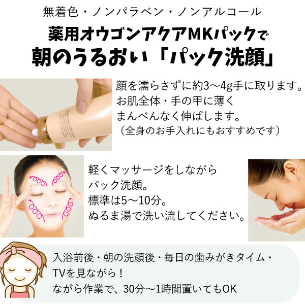 【関連ワード】薬用オウゴンアクアMKパック(医薬部外品),化粧品,美容液,基礎化粧品,スキンケア,ペースト状,ペースト状の美容パック,美白パック[パック(美容)]フェイスマスク,フェイスパック,シートマスク,美容マスク,美容パック[販売]VIVANT JOIE,ビーヴァンジョア,ジョアエコ,ビーバンジョア株式会社
