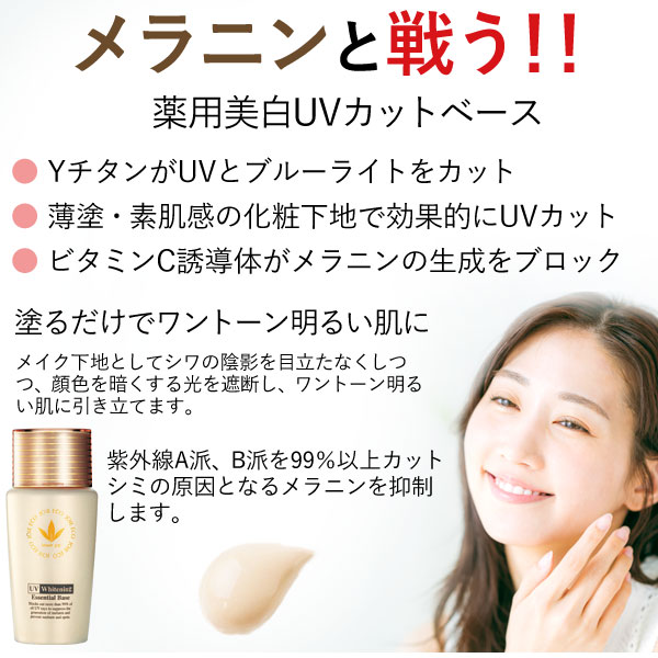 【関連ワード】薬用UV美白エッセンシャルベース(医薬部外品),化粧品,美容液,基礎化粧品,スキンケア[サンスクリーン剤]サンスクリーンざい,日焼け止め化粧品,日焼け止め,日焼け止めクリーム,日焼止めクリーム,ひやけ止めクリーム,日焼け対策,UVクリーム,UVクリーム,基礎化粧品,スキンケア用品[販売]VIVANT JOIE,ビーヴァンジョア,ジョアエコ,ビーバンジョア株式会社