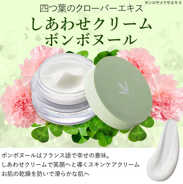 ボンボヌールは、フランス語でしあわせの意味。四つ葉のクローバーエキス(※1)配合の『しあわせクリーム』で笑顔になる。