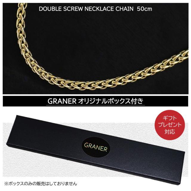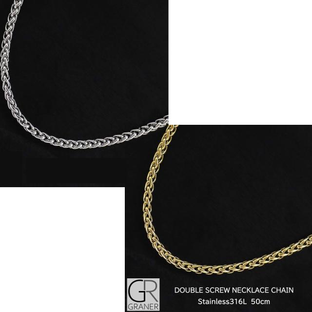 メンズネックレスチェーン メンズネックレス ステンレス ネックレス チェーン メンズ スクリュー ダブル 50cm シンプル ゴールド 金 金属アレルギー 対応 graner GR-006