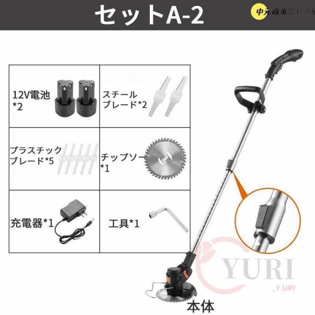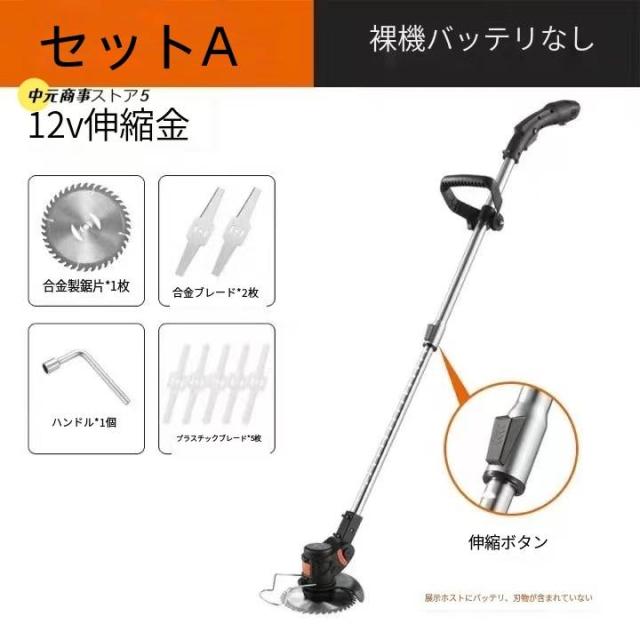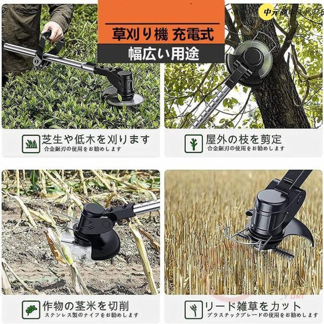 草刈機 充電式 電動 草刈り機 芝刈り機 伸縮式 角度調整 替え刃付き 枝切り 静音 パワー 家庭用 刃 軽量 女性 12v 庭 草 畑 雑草