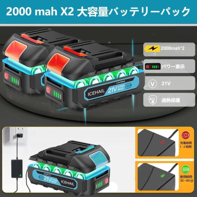 (1)1個バッテリーは約25分間に使用可能(作業状況により使用時間が異なる場合があります)