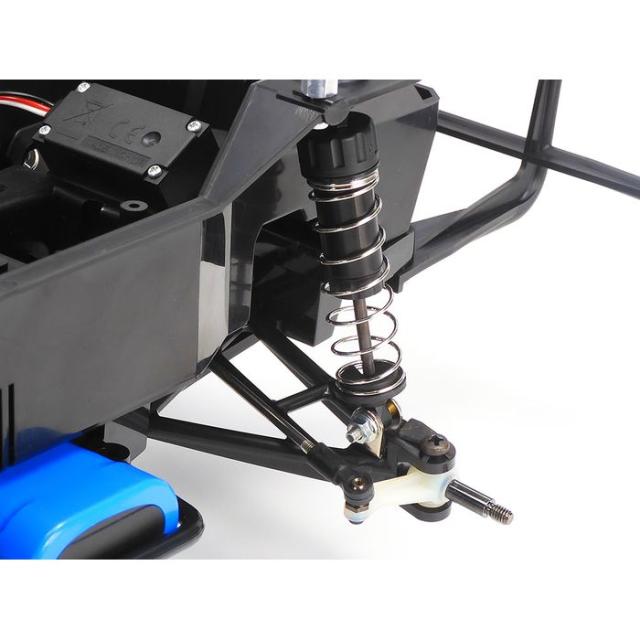 ■基本スペック :全長385mm、全幅240mm、全高255mm ホイールベース207mm タイヤ幅/径=前後とも36/94mm トレッド=前後とも195mm フレーム=ABS樹脂製ボックスタイプ 駆動方式=後輪2輪駆動 デフギヤ=3ベベルデフ ステアリング=2分割タイロッド式 サスペンション=フロント/スイングアクスル、リヤ/ローリングリジッド ダンパー=CVAオイルダンパー ギヤ比=14.7:1 モーター=540タイプ スピードコントローラー=ESC仕様(別売)