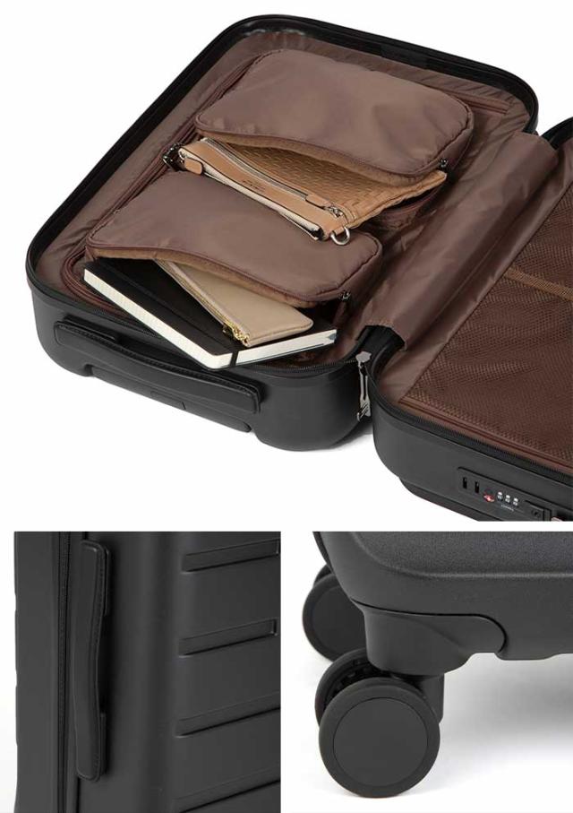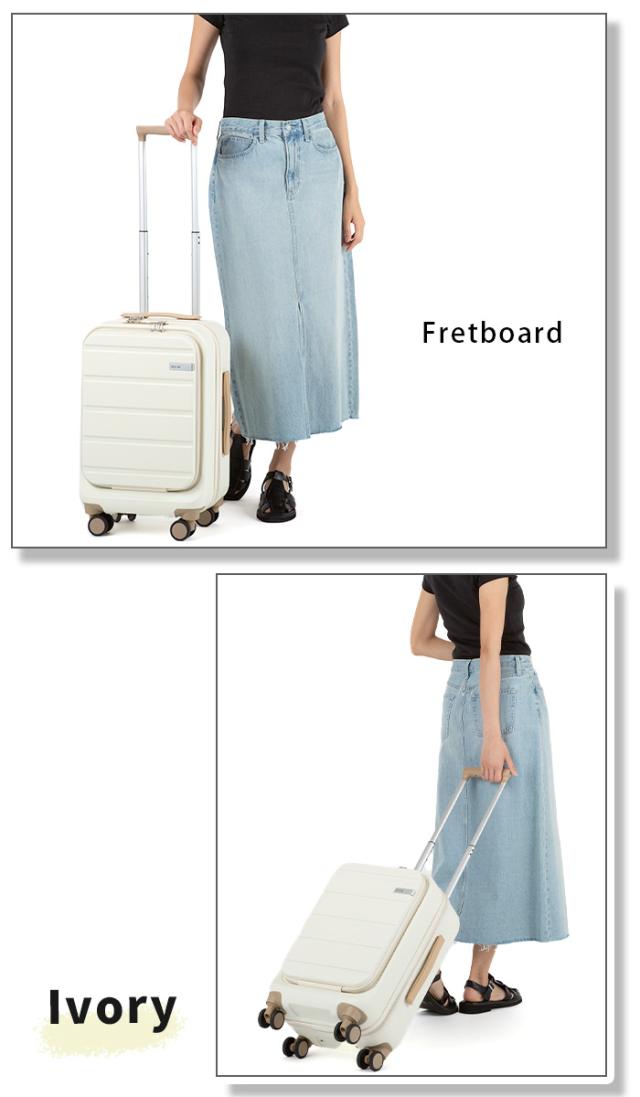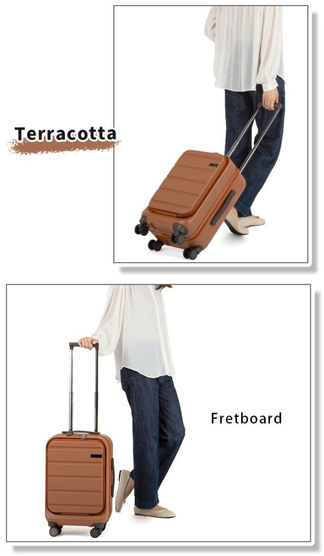 | この商品について | 角を落とした柔らかなフォルムのスーツケース【Fretboard/フレットボード】登場。 細かなシボの入ったマットな質感の本体に、アース調のカラーをマッチさせた、トラベルシーンに自然と馴染むナチュラルなデザインのプロダクトです。 ハンドルに本革をあしらうことで、カジュアルになりすぎない落ち着いた印象に。エイジレス・ジェンダーレスでお使いいただけます。 2〜3泊程度の旅行におすすめのサイズ感で、国際線&100席以上の国内線持ち込み可能なサイズ(規定は航空会社によって異なる場合があります)。 ボディシェルは傷が目立ちにくいマットな質感。 施錠したまま預けることができるTS LOCK(Travel Sentry 認可ロック)を搭載。キーを必要としない3ケタのダイヤル式ロックになっています。 内装は両面ともファスナーの仕切り付で、開閉時の荷こぼれを防ぎます。小物類の仕分け収納に便利なポケット類が充実。 移動中の荷物の出し入れにも便利なフロントオープンタイプ。フロントポケット内のファスナーから本体収納スペースにそのままアクセスできます。タブレット類などの収納に最適なクッションポケット付き。 旋回性に優れた双輪キャスターで移動もスムーズに行え、停止時に、想定外の走行を防ぐキャスターストッパーが付いているのも嬉しいポイント◎ 出張や修学旅行からカジュアルな週末旅行まで、あらゆるシーンで使いやすいスーツケースです。 ※コインロッカー標準サイズH400×W340×D570に収納可能です。(コインロッカーのサイズは参考目安です。各駅、設置場所により若干異なります。) ※このスーツケースのTSロックはダイヤルコンビネーションロックです。鍵穴は、TS職員が緊急の際に解錠して検査を行うためのものであり、差し込み式のキーは付属しておりません。 |