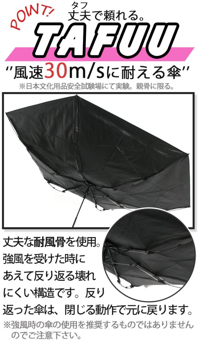 「TAFUU」風速30m/s(走行中のトラックが横転するレベルの強風)の向かい風に耐えた丈夫な耐風骨を親骨に使用。