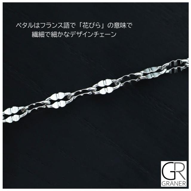 フランス語で花びらを意味するペタルを組み合わせた繊細なチェーン。水・汗に強いステンレス316Lは、装着したままでも海やプール、温泉などにも入水できます。キズが付きにくいので、お手入れなしでもいつまでも輝きが持続します。金属アレルギーを誘発しにくい肌に優しい素材です。