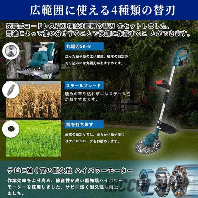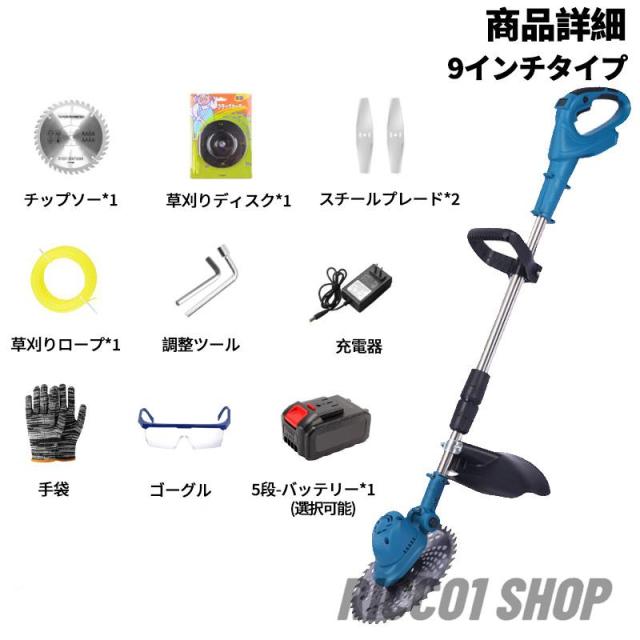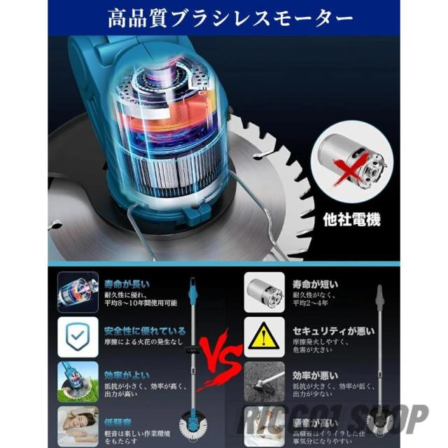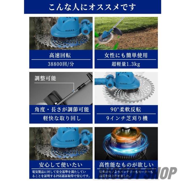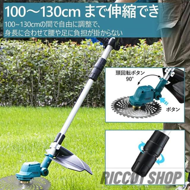 草刈機 充電式 電動草刈機 草刈り機 マキタ バッテリー互換 ブラシレスモータ コードレス 9インチ刈払機 刈払い機 伸縮 角度調整 家庭用 女性