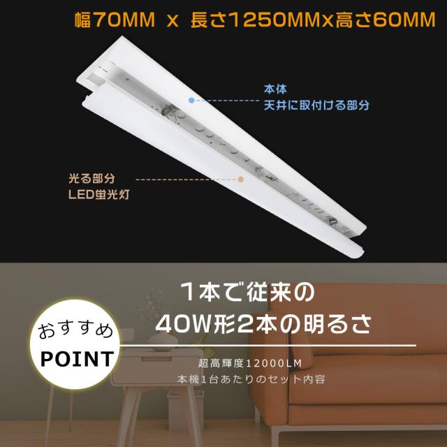 ★4本入り★一体型LEDベースライト 40形 トラフ型照明器具 40W型 器具一体型LED蛍光灯 40W形 ベースライト LED 40W トラフ型 LEDベースライト 40W形 LED蛍光灯 40W形 器具一体型 キッチンベースライト LED 天井直付型LEDシーリングライト 60W 12000LM スーパー/倉庫/オフィス