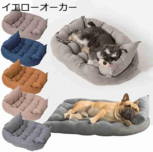 3way洗えるフェザーストア ペットベッド - ふかふかな布団とクッション付き - Sサイズ63cm - 犬用 猫用 - イエローオーカー - Mサイズ80cm