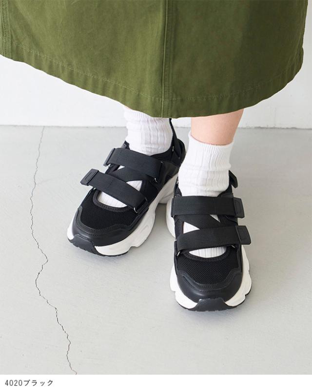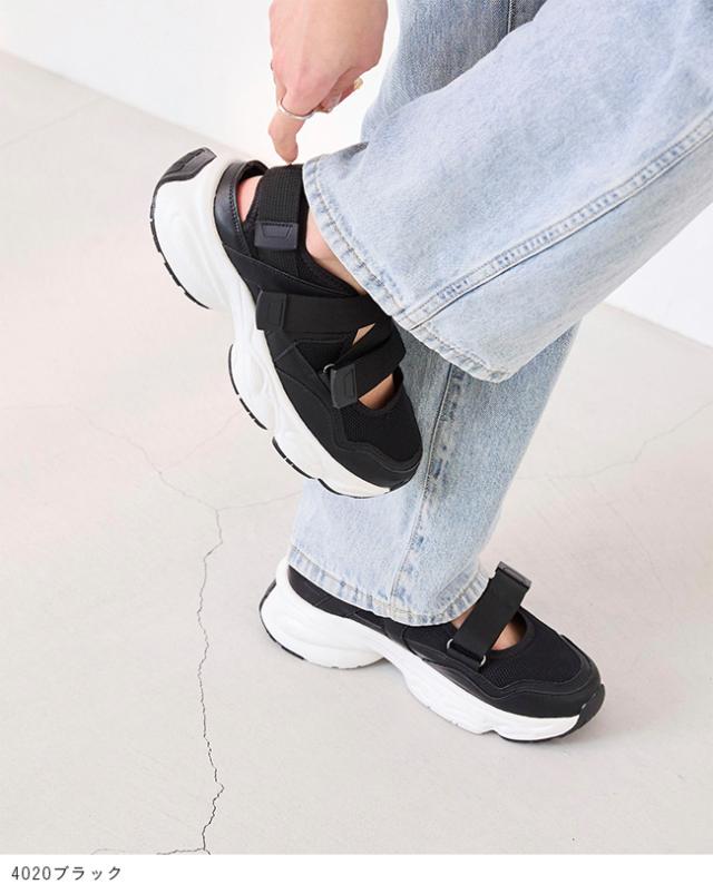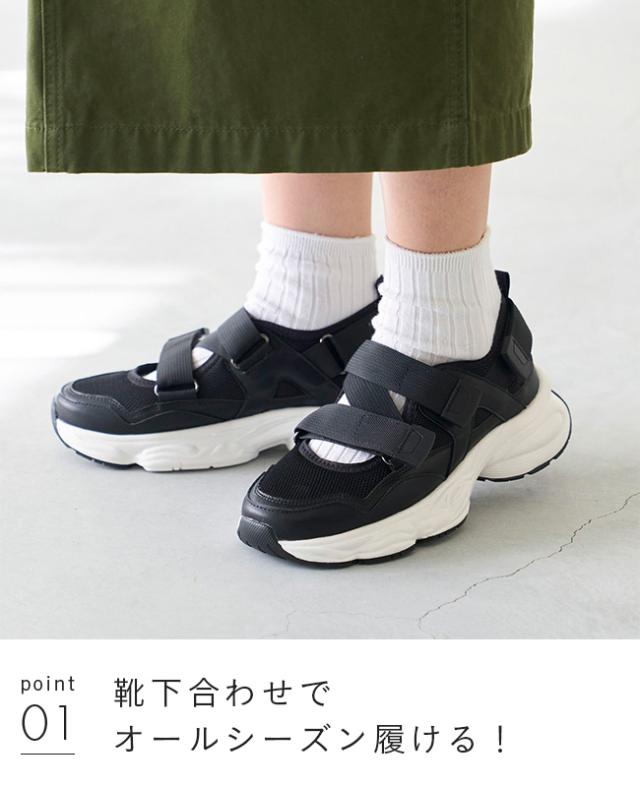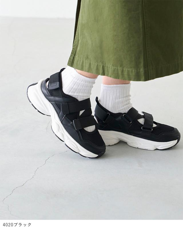 サンダル スポーツサンダル スポサン スニーカーサンダル レディース 痛くない 歩きやすい 面ファスナー ベルクロ 厚底 黒 レジャー アウトドア 送料無料