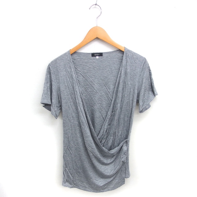 【中古】ボッシュ BOSCH カーディガン ドレープ 変形 薄手 無地 シンプル 半袖 38 グレー /TT レディース