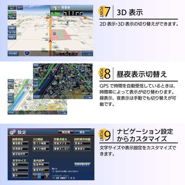 全国道路ネットワーク&オープンストリートマップ地図2025年度版最新地図を搭載!!5種類のルート検索方法に対応! カーナビ初心者!初めての道でも安心! |