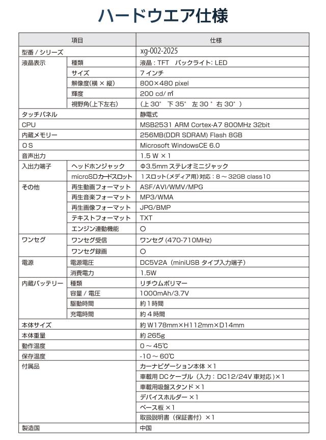 ・8GB内蔵メモリー ・DC12V&DC24V対応 ・ワンセグ対応 ・音楽再生 ・電子書籍 ・トンネルアシスト ・モニター解像度:800×480pixel ・サイズ:176×110×25(mm) |