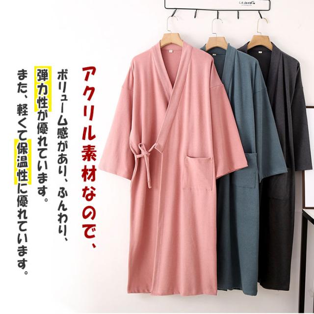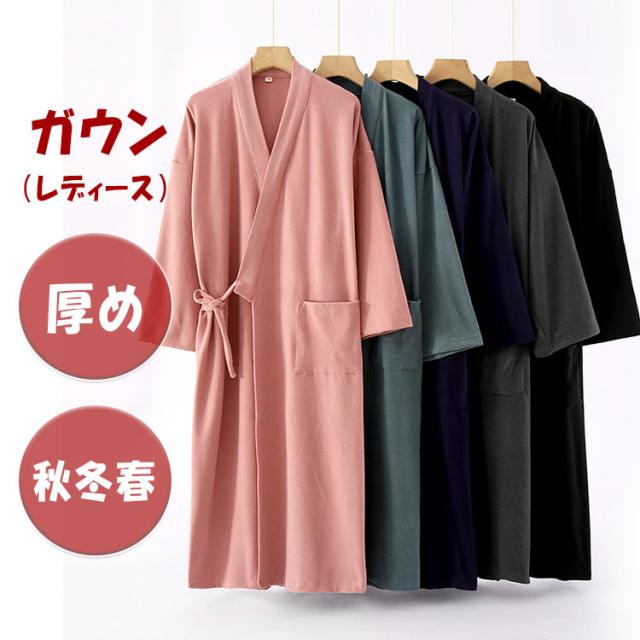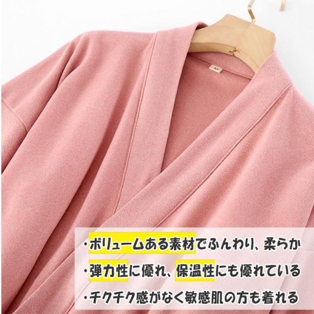ガウン レディース ゆったり 柔らか 保温性が高い パジャマの上に羽織る 冷え予防 来客時にパッと羽織れる 厚め 弾力 シワになりにくい チクチク感なし 敏感肌の方も着れる 前合わせ 前開き 紐 送料無料 部屋着 寝巻き 誕生日 母の日 プレゼント