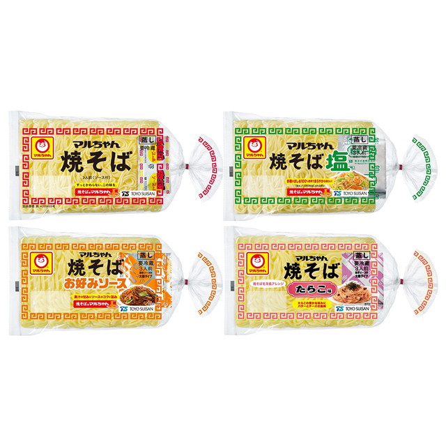 [冷蔵] 東洋水産 マルちゃん焼そば 3人前 (150g×3)/[冷蔵] 東洋水産 マルちゃん焼そば 塩 3人前 (150g×3)/[冷蔵] 東洋水産 マルちゃん焼そば お好みソース 3人前 (135g×3)/[冷蔵] 東洋水産 マルちゃん焼そば たらこ味 3人前 (135g×3)/各種1袋ずつ詰め合わせております。