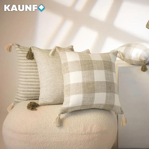 タッセル付きクッションカバー,家の装飾用の正方形のリネン枕カバー,ソファ,ベッド,椅子用の白いクリーム,30x45