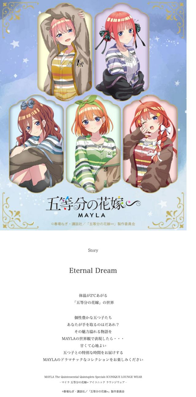 MAYLA マイラ 五等分の花嫁 グッズ 服 五等分の花嫁 アイコニック ラウンジウェア 中野一花 フリーサイズ 男女兼用 ユニセックス メンズ レディース 正規品 新品 公式 五等分の花嫁 キャラクターウェア 人気 ブランド プレゼント