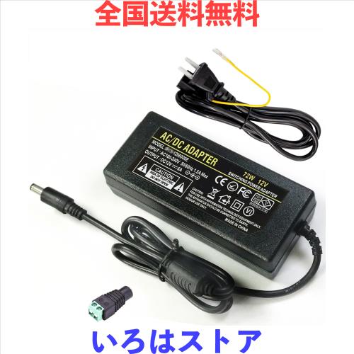 ? <対応機種>幅広い互換性の12V ACアダプター、LED テープライト・ビデオ・防犯カメラ・監視カメラ・オーディオ用など12V(0〜6A)規格の製品には電源としてご利用させていただけます。コンパクトかつ 6000mA の大容量! 最大出力を超えない場合は複数のデバイスへの電源供給にも最適! 安定した電源供給が可能な12V アダプターです。バッテリー充電としてまたは高い信頼性を必要とする用途(精密機器、医療機器など)には不向きです。※モーターのように電源投入時(スタート時)に定格電流を大きく上回る電流(ピーク電流)が あるものは動かない場合がありご注意ください。