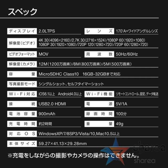 AC-01 4Kアクションカメラには、Class 10/書き込み速度95MB/S以上(U3-V30)SanDiskなどのブランド32GBまでのMicroSDカードの使用を強くお勧めします(Micro SDカードは含まれていません)。使用する前に、アクションカメラでカードをフォーマットしてください。