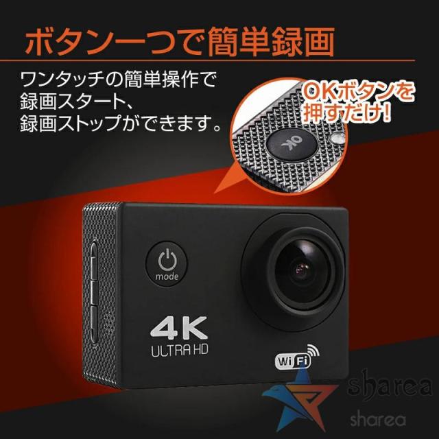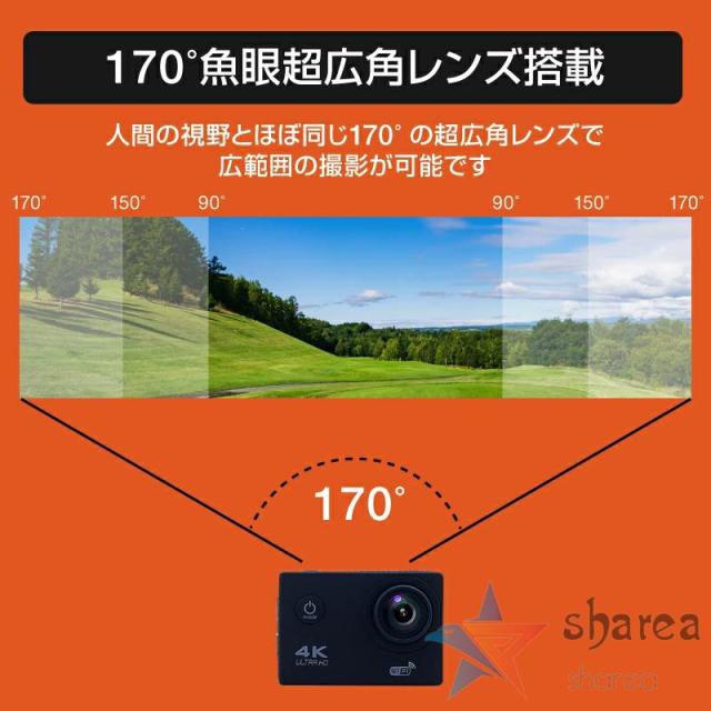 アクションカメラ 4K ウェアラブルカメラ 4k 30M防水 170度広角レンズ リモコン付き アクションカム 水中カメラ 防水カメラ スポーツカメラ 録画 防塵
