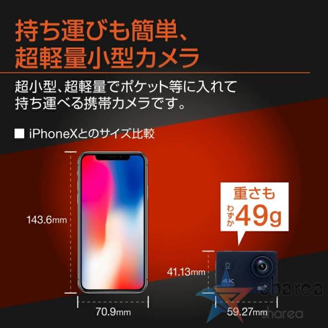 リモコンは便利な操作性を提供します。リモコンを使えば、カメラを手に持っている必要がなくなります。例えば、自転車やスキー、サーフィンなどのアクティビティを楽しんでいる時にも、リモコンを使って簡単に写真撮影やビデオ記録を行うことができます。これにより、思い出の瞬間を逃すことなく捉えることができます。さらに、Wifi転送機能は、撮影した画像や動画を素早く共有するための便利なツールです。カメラとスマートフォンを簡単に接続することができ、専用のアプリを介して画像や動画を送ることができます。家族や友人との共有や、SNS上でのシェアなど、大切な瞬間を即座に伝えることができます。思い出に残る瞬間を鮮明に記録し、大切な人々と共有するために最適なアクションカメラです。