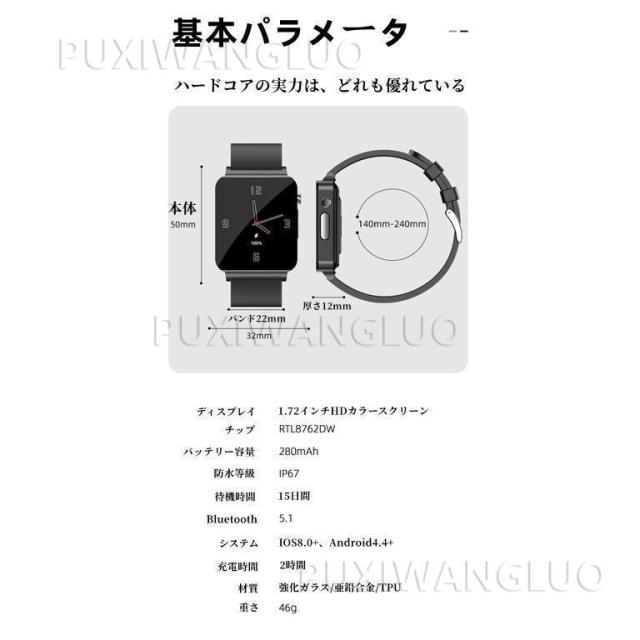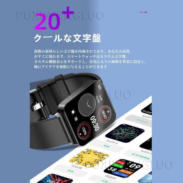 このスマートウォッチは高解析度画面を採用され、画質が鮮明になり、より大きく高精度な大画面で文字を表示されます。例のない快適な視覚感と優れた操作感をもたらします。例のない快適な視覚感と優れた操作感をもたらします。スマートウォッチに本は20+種類の文字盤が内蔵されており、アプリと同期には多種類の文字盤を選択ができます。