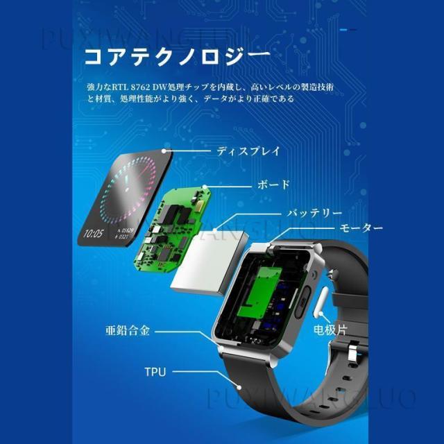 スマートウォッチ 日本製センサー 血糖値 心電図 血圧測定 酸素濃度 体温 心拍数 睡眠管理 LINE通知 血中酸素 24時間健康管理 着信通知 腕時計 iPhone Android