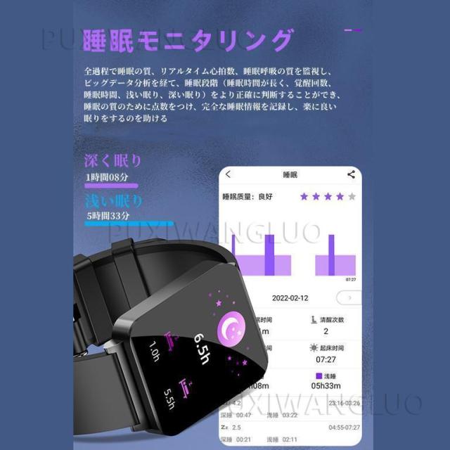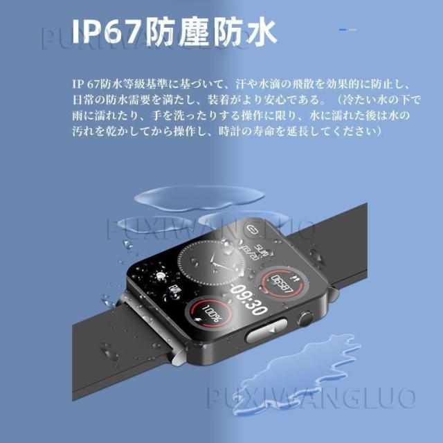 スマートウォッチにIP67級防水及び防塵性能を持っており、日常中の手洗いや洗顔の際も取り外す必要ありません、雨にもご配要りません。ご注意:※お風呂、サウナ、温泉水や温泉の湯気及び高い水圧は故障の原因となります。