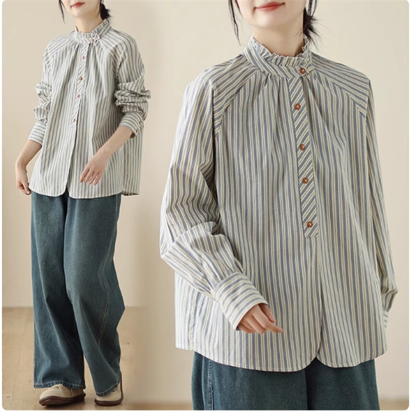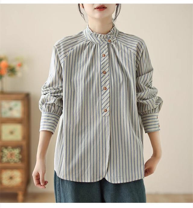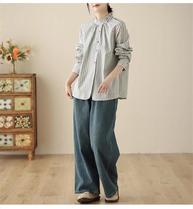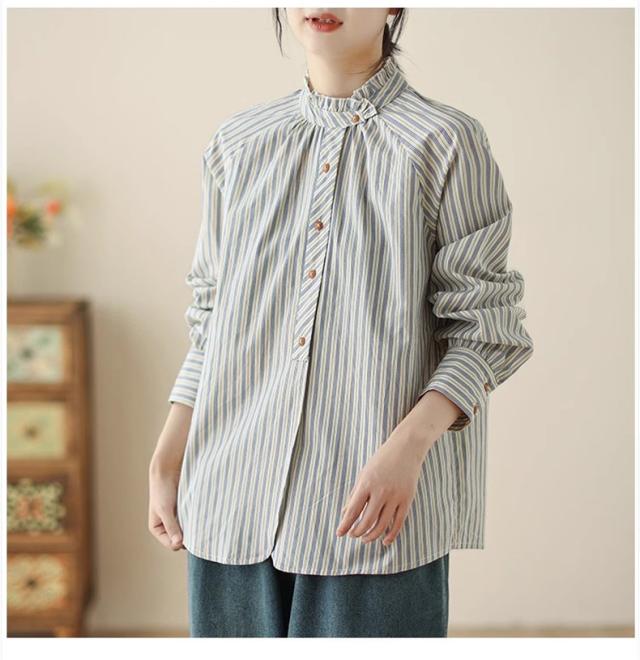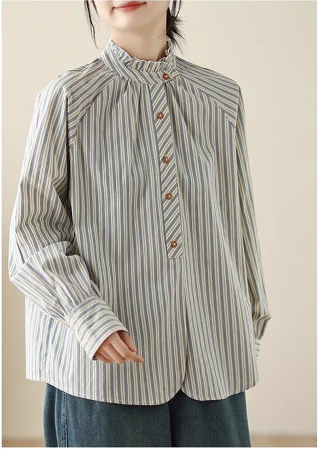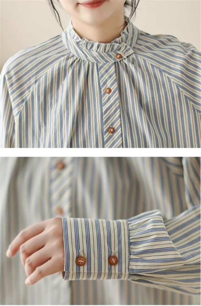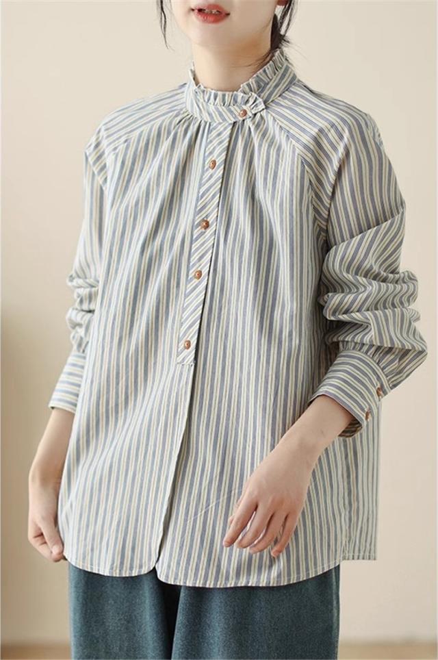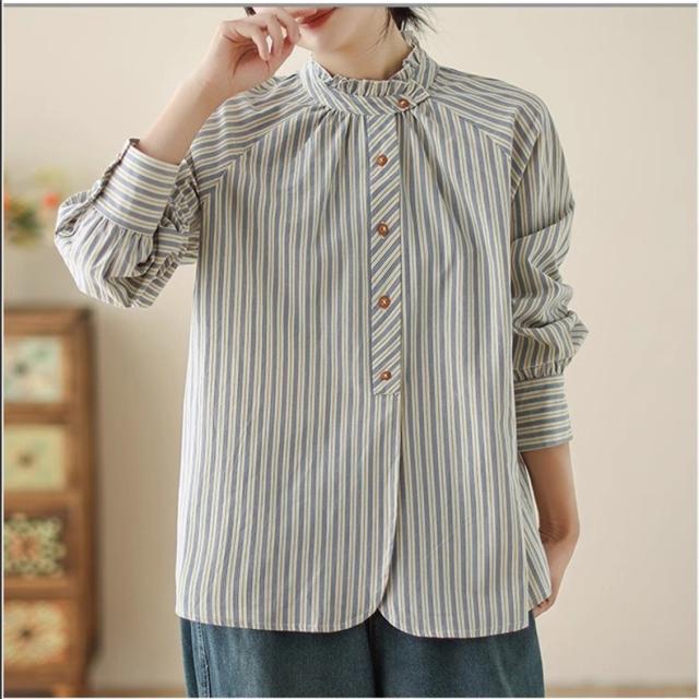 シャツ 春秋 レディース トップス 長袖 羽織り ストライプシャツ オーバーサイズ すっきりとメリハリを意識◎ シンプルになりすぎない 落ち着いた印象