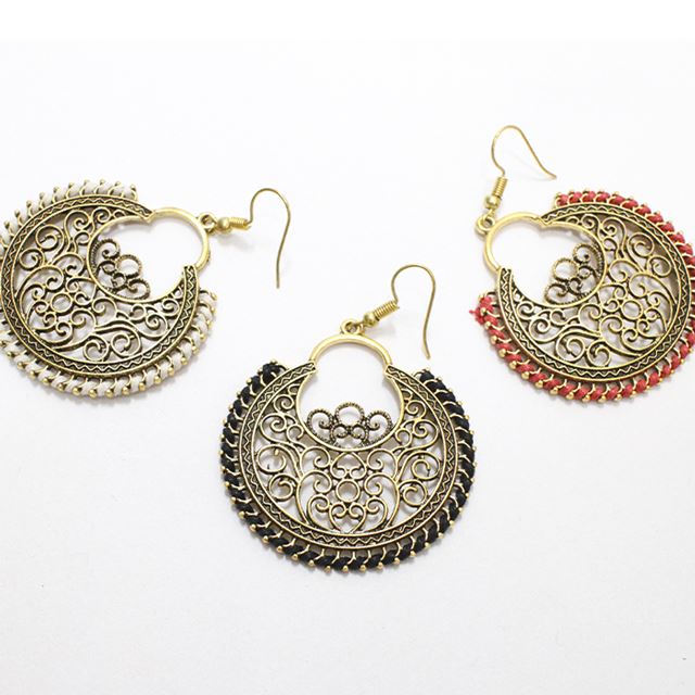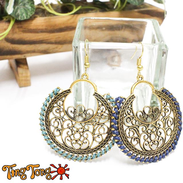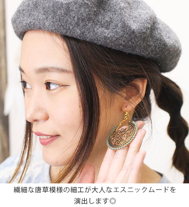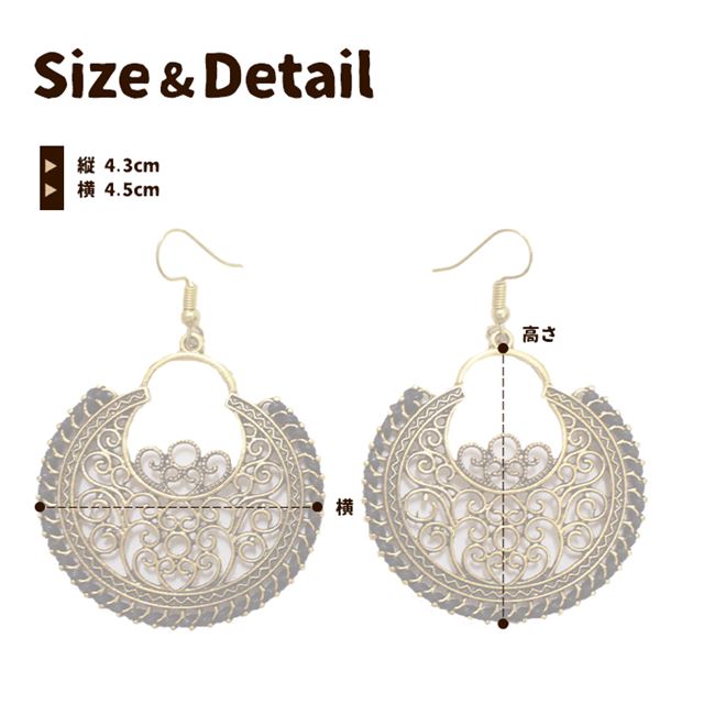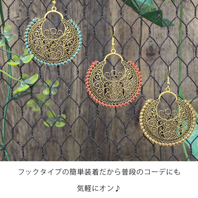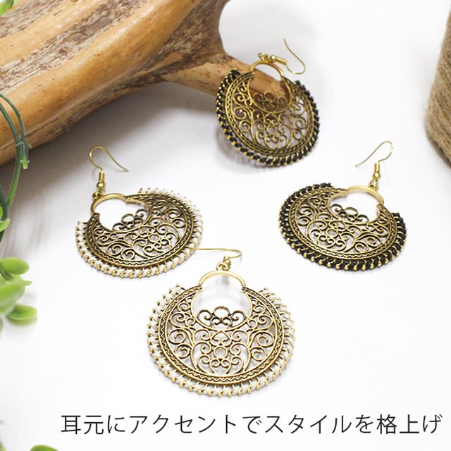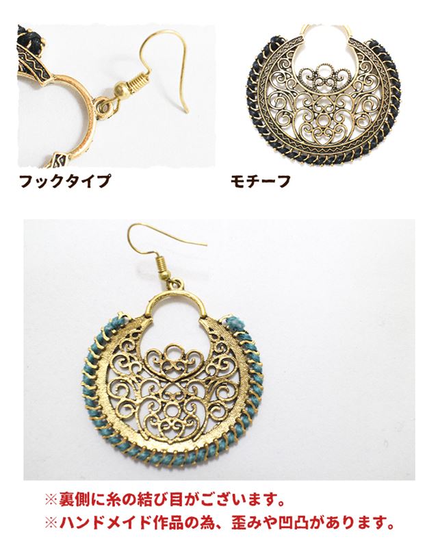 ピアス エスニック アジアン オリエンタル トライバル ! ラウンド 唐草ピアス 大ぶり フック ループ ゴールド アンティーク