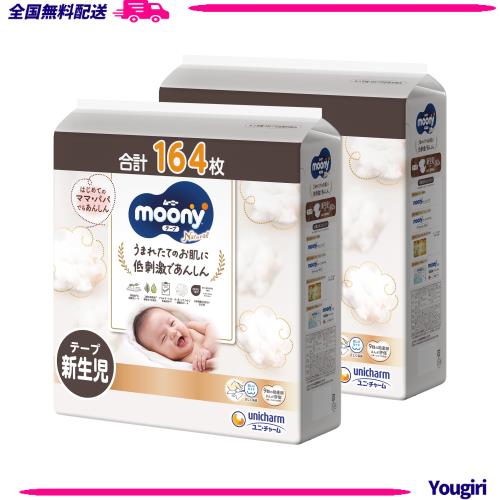【テープ 新生児サイズ】 ムーニーナチュラル オーガニックコットン オムツ(お誕生~5000gまで)164枚(82枚×2)[ケース品]