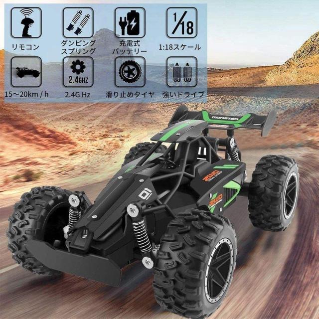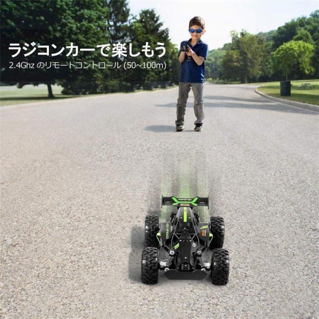 1/18大きい小さいもなくジャストサイズ、走行用3.7Vリチウム充電式バッテリー最大速度20km/hに達する、パワフルで驚くべきの走行速度が速い、反応速度も素早く、50-100mまでの操作距離も長い。