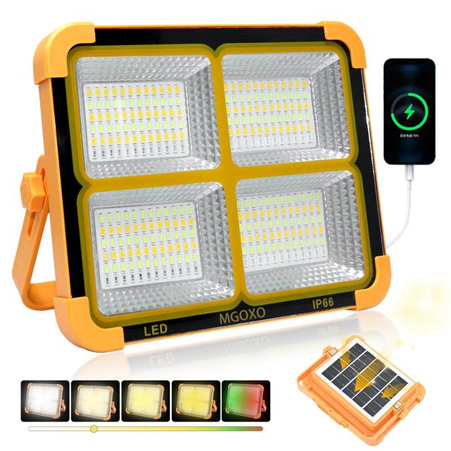 MGOXO 投光器 LED 充電式 作業灯 16000mAH大容量 超高輝度 240W 15000LM ソーラー充電/Type-c充電 便携式 5色切替 無段階調光 太陽光発電