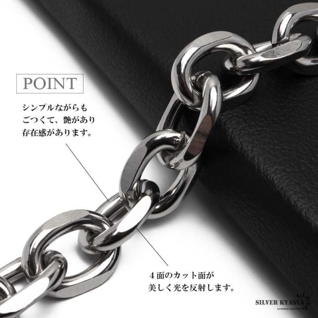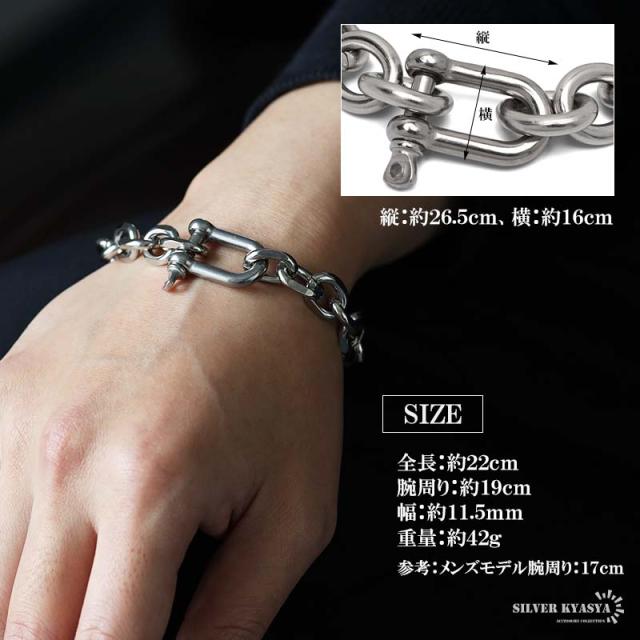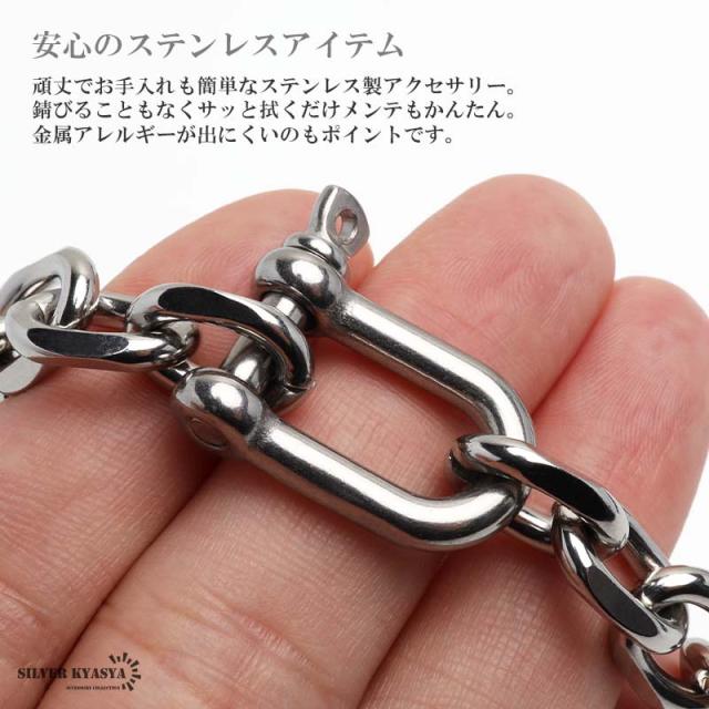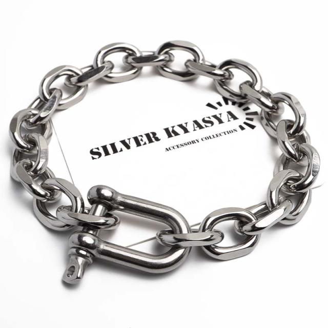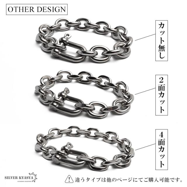 ステンレス チェーンブレスレット シャックルブレスレット 4面カット ごつめ 馬蹄 ホースシュー 太幅 ロック 存在感 メンズ 男性 金アレ対応