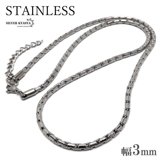 ステンレス チェーンネックレス メタルネックレス 3mm 細身 シンプルネックレス 3サイズ シルバー 艶 滑らか メンズ 男性 金アレ対応