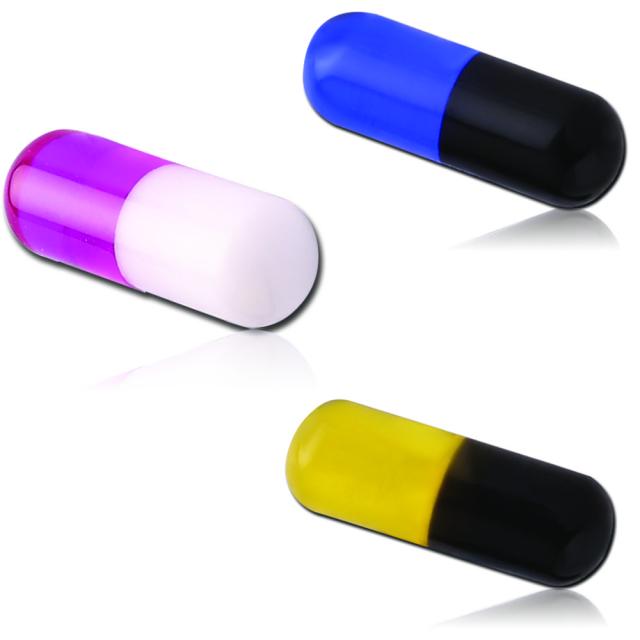 お薬のカプセル錠をモチーフにしたカラフルで面白いアクリル樹脂製のボディピアスのネジ式キャッチ。
