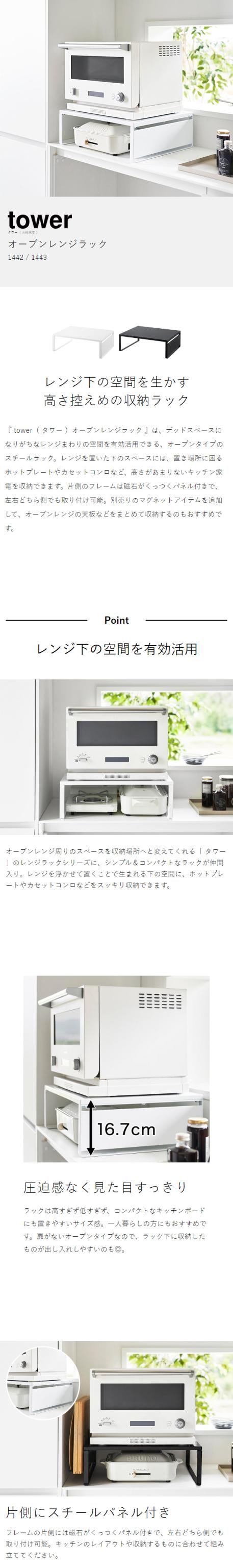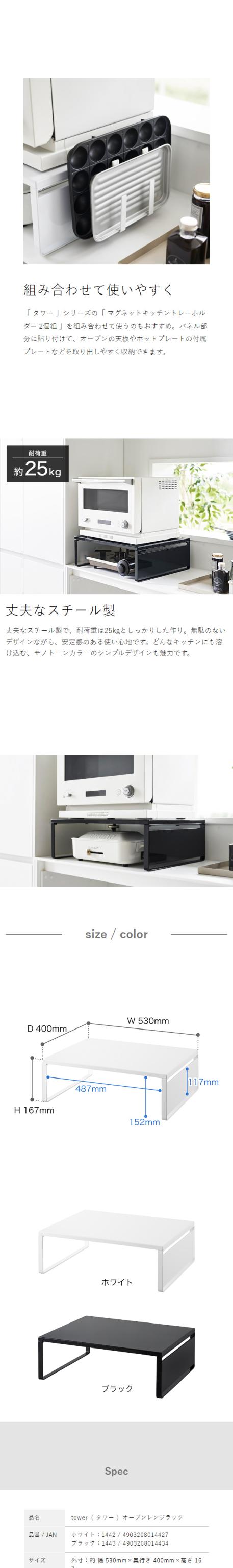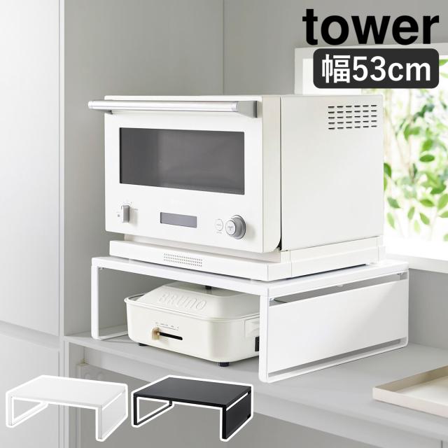 [ オーブンレンジラック タワー ]山崎実業 tower 幅53 奥行40 レンジ下収納 家電下収納 ラック 棚 カウンター上 レンジ台 電子レンジ キッチン収納 ホットプレート カセットコンロ 北欧 おしゃれ yamazaki 公式 モノトーン ブラック ホワイト 1442 1443