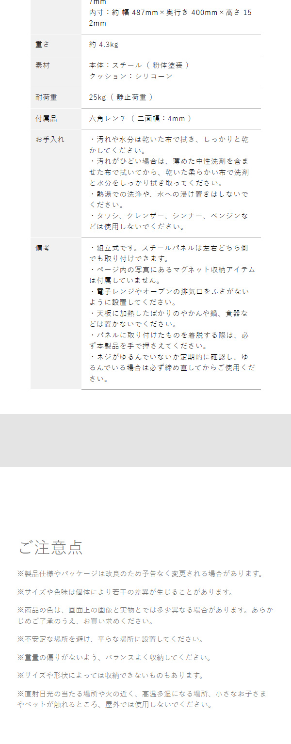 レンジを浮かせて置くことで生まれる家電下の空間に、キッチン家電などをスッキリ収納できるラック。フレームの片側には磁石がくっつくパネル付きで、左右どちら側でも取り付け可能。