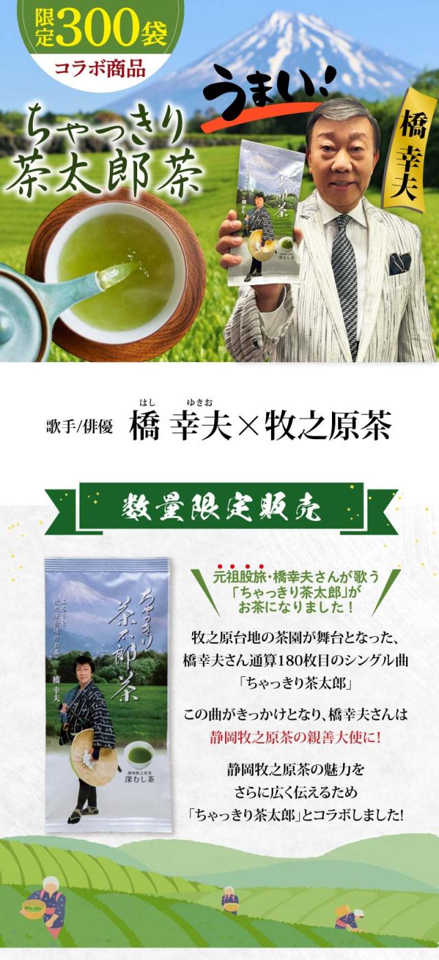 【大蔵ざらえセール対象:15%OFF】 橋幸夫コラボ商品 ちゃっきり茶太郎茶 150g 送料無料 静岡茶 茶葉 ギフト プレゼント お茶 静岡茶 緑茶 橋幸夫 ちゃっきり茶太郎 深蒸し茶 日本茶 お茶葉 お茶の葉 両親 お土産 静岡土産 贈り物 agesugi_sgu