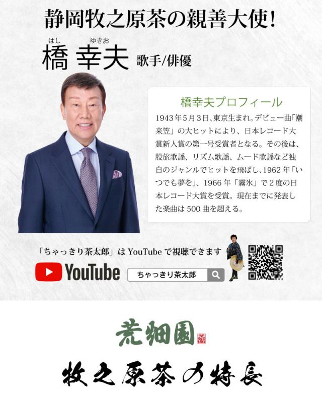 荒畑園では、そんな橋幸夫さんとのご縁を大切にし、静岡牧之原茶の魅力をさらに広く伝えるために「ちゃっきり茶太郎」とコラボしました!