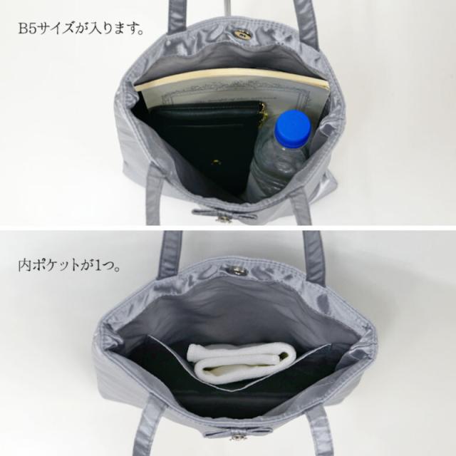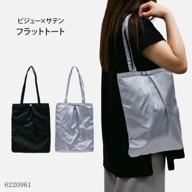 ツヤのあるサテン地を使用したトートバッグになっていますのでオケージョン等のサブバッグに最適です。