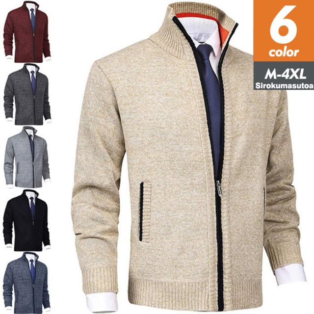 カーディガン メンズ 長袖 ビジネスジャケット 立ち襟 紳士用 ビジネス ニットカーディガン アウター セーター 羽織 トップス