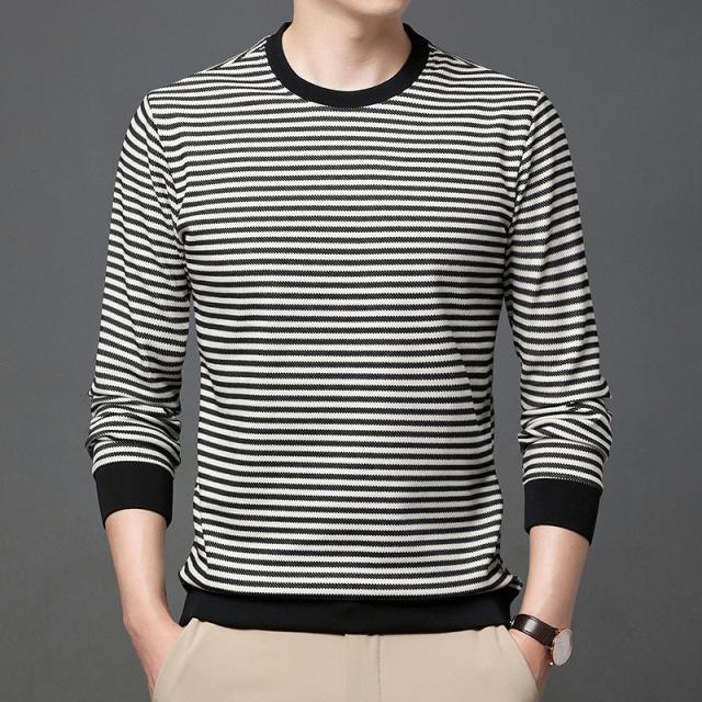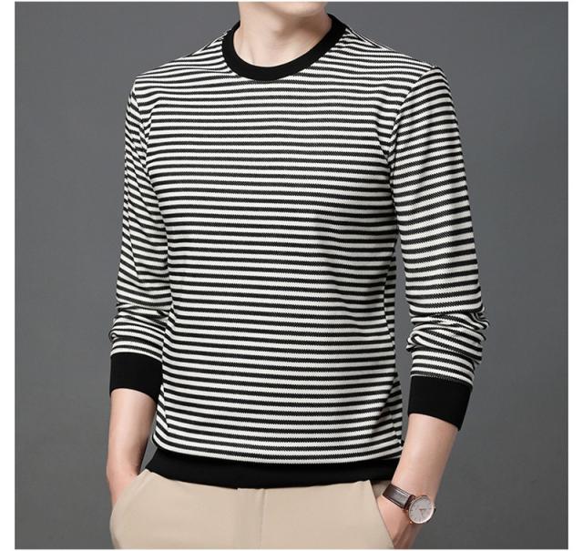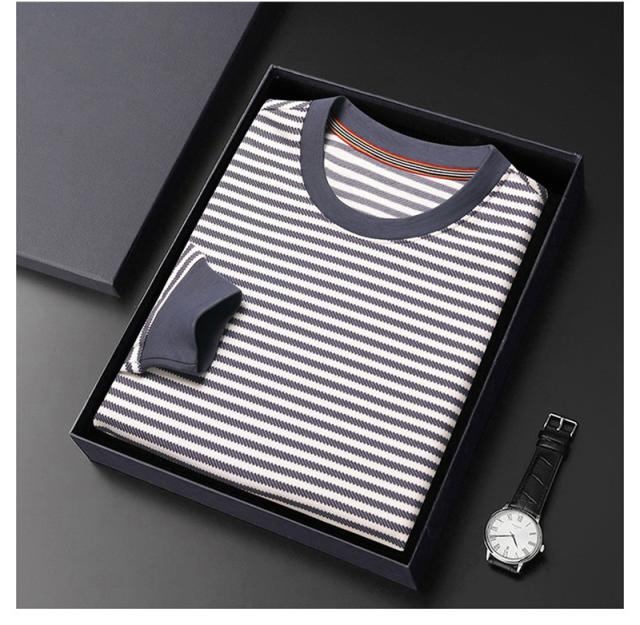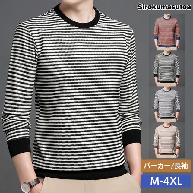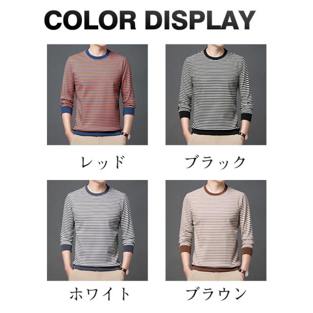 tシャツ メンズ 長袖 ストライプ カットソー ビジネス クールビズ 紳士 シンプル カジュアル インナー トップス 部屋着 秋