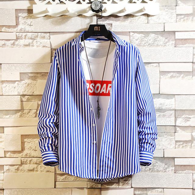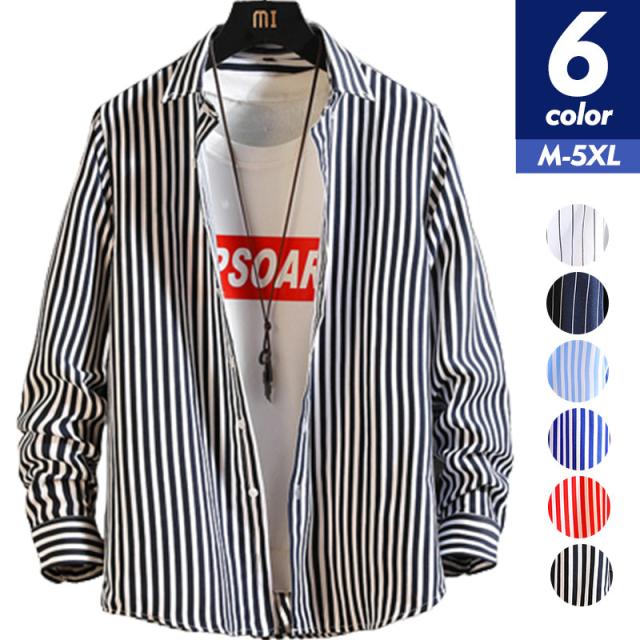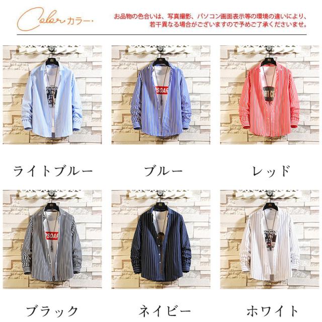 カジュアルシャツ メンズ 長袖シャツ ストライプ ビジネス シャツ ワークシャツ 無地 秋 長袖 開襟シャツ オフィス アウター